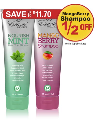 Save up to $11.70 today! Contents: 1 - MangoBerry Shampoo 8oz 1 - NourishMint Hair Conditioner Rinse 8oz Wholesale Members Save: $9.00 Retail Customers Save: $11.70 Points: 21