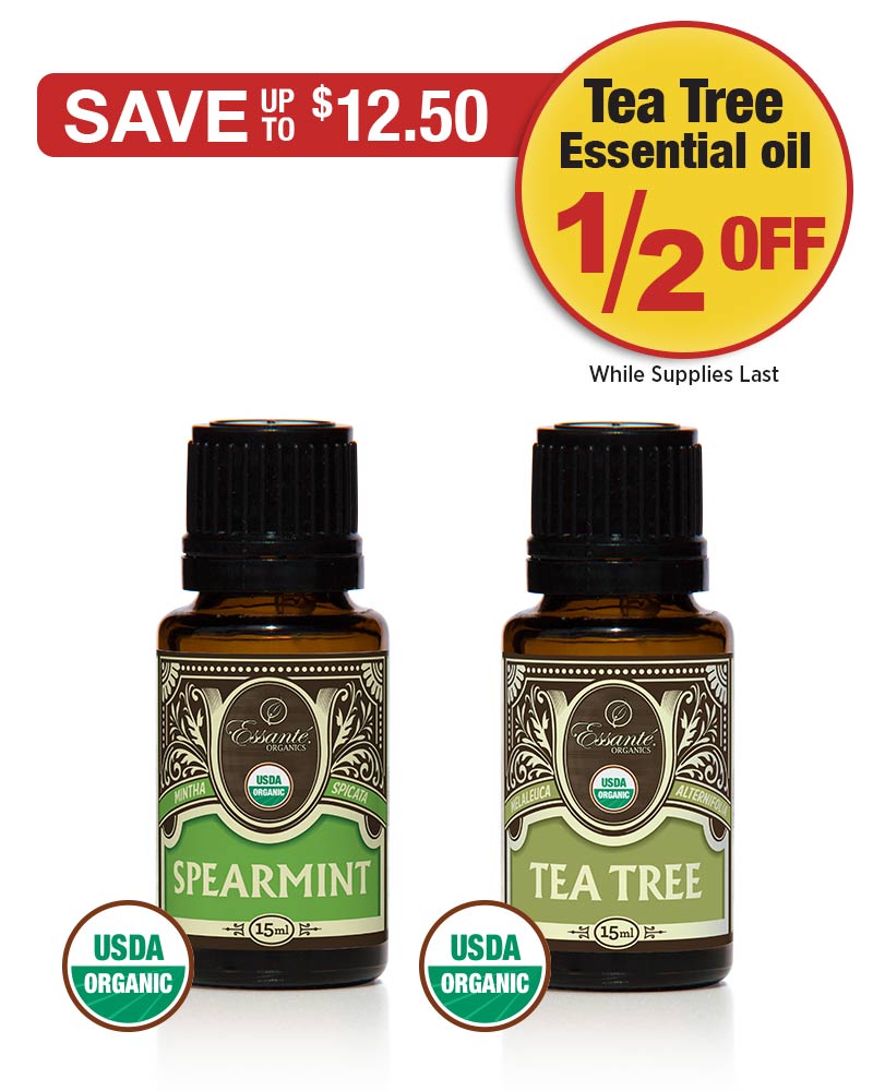 1 - Spearmint Essential Oil USDA Organic, 15ml 1 - Tea Tree Essential Oil USDA Organic, 15ml