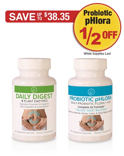 Contents: 1 - Daily Digest Enzymes 90 Capsules 1 - Probiotic pHlora 90 Capsules Retail Customers Save $38.35 Wholesale Members Save $29.50 Points: 45